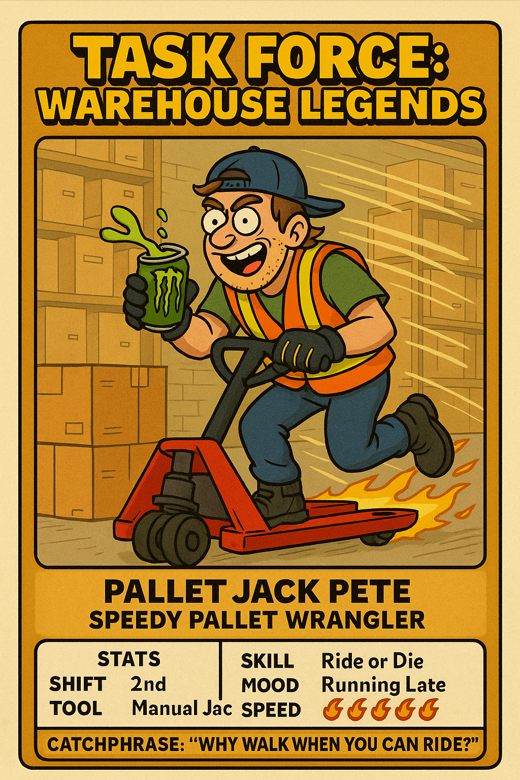 These cards started out as a joke. A little side project to distract myself from everything else I had going on. But the more I worked on them, the more fun I had. Creating these exaggerated, over-the-top warehouse characters—people who throw boxes like they're in a video game, or solve inventory problems with pure chaos energy—it made me laugh. And for a while, that was more than enough.